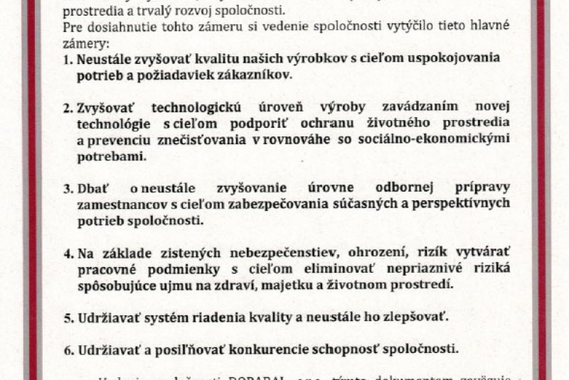 DOPABAL s.r.o. was established in 2005 when MVDr. Anton Pľuta, founded in 1996 and operated as a family business, was changed into a limited liability company. In 2012, DOPABAL s.r.o. was awarded a Quality Management System Certificate by SGS Slovakia spol. s r.o. in accordance with the EN ISO 9001 standard, followed by a successful recertification in 2016.